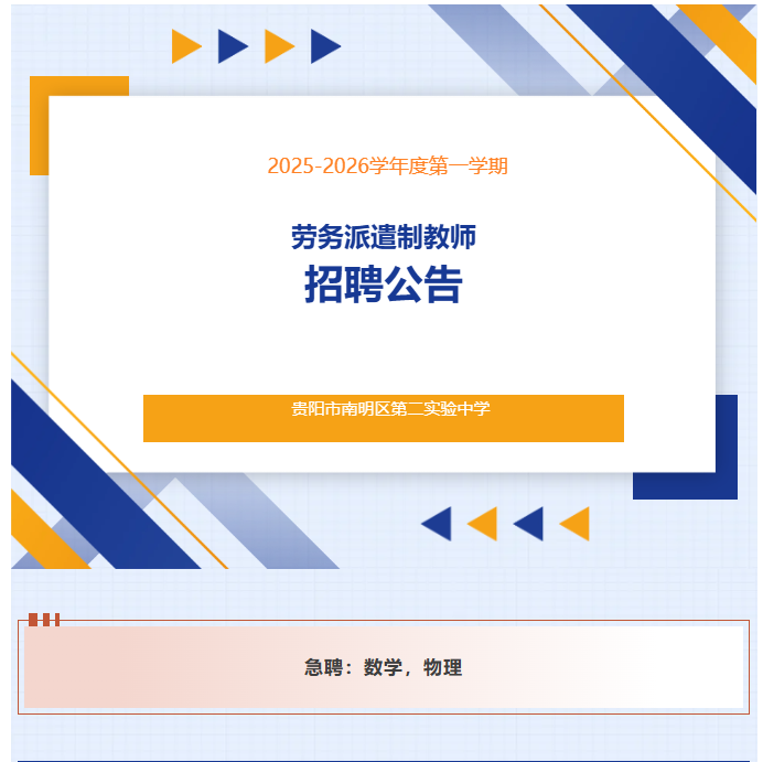 貴陽市南明區(qū)第二實(shí)驗(yàn)中學(xué)2025-2026學(xué)年度第一學(xué)期勞務(wù)派遣制教師招聘公告